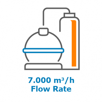 The maximum flow rate during tanker offloading and loading is 7,000 m³/h. A crude oil tanker between 80,000 to 160,000 tons can be unloaded in 24-36 hours.