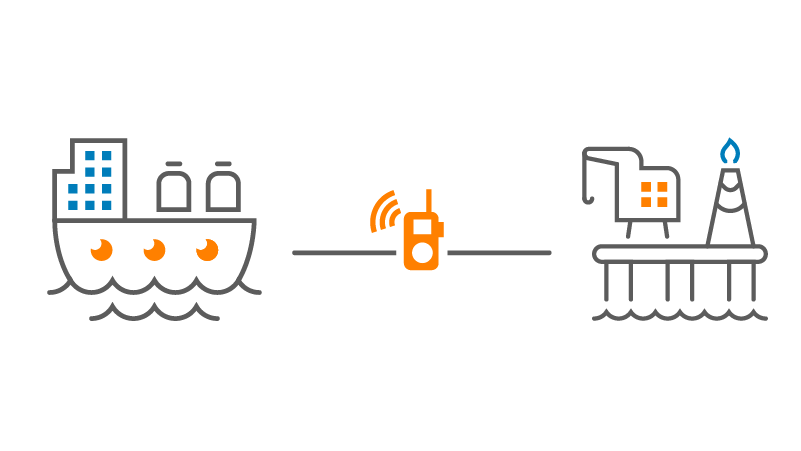 The communication with the operators on board of the terminal is by mobile VHF radio contact.